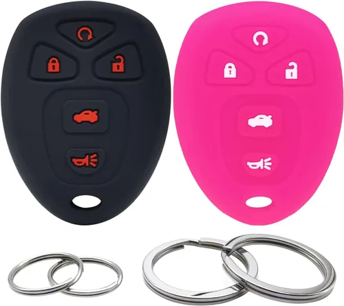 Propiedades del producto: Botón: 5 Botones Color: negro y rosa intenso Material de la funda de llavero: silicona suave Material del llavero: acero inoxidable 18/8 El paquete incluye: 2 fundas para llaves 4 llaveros Nota: Comprueba que tu llave tenga el mismo aspecto que nuestro artículo antes de hacer el pedido. Modelos para referencia: Compatible con Chevrolet Cobalt 2007-2010 Compatible con Chevrolet Impala 2006-2013 Compatible con Chevrolet Monte Carlo 2006-2007 Compatible con Chevrolet Malibu 2004-2013 Compatible con Chevrolet Suburban 2007-2013 Compatible con Chevrolet Suburban 1500 2007-2014 Compatible con Chevrolet Suburban 2500 2007-2013 Compatible con Chevrolet Tahoe 2007-2014 Compatible con Chevrolet Traverse 2009-2015 Compatible con GMC Acadia 2007-2015 Compatible con GMC Yukon 2007-2014 Compatible con GMC Yukon Denali 2007-2012 Compatible con GMC Yukon XL 1500 2007-2014 Compatible con GMC Yukon XL 2500 2007-2014 Compatible con Buick LaCrosse 2005-2009 Compatible con Buick Terraza 2005-2007 Compatible con Buick Lucerne 2006-2011 Compatible con Buick Enclave 2008-2015 Compatible con Cadillac DTS 2006-2011 Compatible con Cadillac Escalade 2007-2014 Compatible con Cadillac Escalade ESV 2007-2014 Compatible con Cadillac SRX 2007-2014 Compatible con Pontiac G5 2007-2010 Compatible con Pontiac G6 2005-2010 Compatible con Pontiac Grand Prix 2005-2008 Compatible con Saturn Aura 2007-2010 Compatible con Saturn Outlook 2007-2010 Compatible con Saturn Relay 2005-2007 Compatible con Saturn Sky 2007-2010 Compatible con el número de parte de referencia: KOBGT04A 22733524 10305091 10305092, OUC60270 OUC60221 15913415 15857839 15916016 20869053 20869963 20952476 20952477 22756459 22936101 22951509 25839476