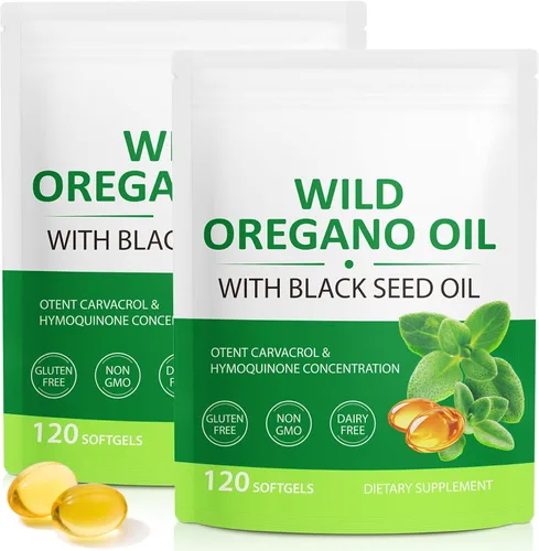 Aceite de orégano orgánico 6000 mg, cápsulas de aceite de orégano 2 en 1 con cápsulas blandas de aceite de semilla negra, 120 cápsulas de