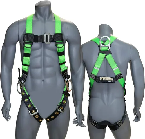 Comodidad: los bordes reforzados evitan la irritación de la piel para mayor comodidad y alivio. El material que absorbe el agua evita que el arnés sufra sudor y rotura del agua. El arnés está diseñado para permitir mejores movimientos laterales. Seguro: destaca y se ve fácilmente con nuestro arnés verde de alta visibilidad. Los anillos en D de acero de aleación garantizan un rendimiento en todo tipo de clima, evitando la corrosión contra todas las condiciones La construcción robusta soporta un uso áspero, soportando largos períodos de elementos al aire libre, incluida la exposición al sol sin desgarrarse o deshilacharse para mayor durabilidad. Fiable: correa trenzada mejorada diseñada con un patrón de costura de alta tensión para máxima seguridad y una resistencia a la tracción de más de 5,000 libras. La correa resistente es altamente resistente a la abrasión, el envejecimiento y no se ablanda por el uso frecuente. Esta correa tiene propiedades de contracción bajas y un umbral de alta temperatura. Nuestros arneses tienen una calidad de construcción insuperable, respaldada por décadas de diseño, investigación, conocimientos de fabricación y rendimiento en el trabajo. Práctico: este arnés compatible está diseñado y diseñado para ser utilizado con otros componentes de un sistema de detención de caídas personal o sistemas de retención personal. El arnés está hecho de una correa confiable que garantiza que es adecuado para los entornos más severos mientras mantiene la máxima comodidad. Rendimiento: clasificación ANSI y OSHA. Nuestro arnés es el arnés perfecto para varios trabajos en construcción, arborista, lavado de ventanas, limpieza de canalones, techos, almacenes, torres, escalada de árboles, búsqueda y rescate, etc. Para uso por una sola persona, con un peso máximo de 310 libras. El peso combinado del usuario, incluida la ropa y las herramientas, no debe exceder la capacidad de peso