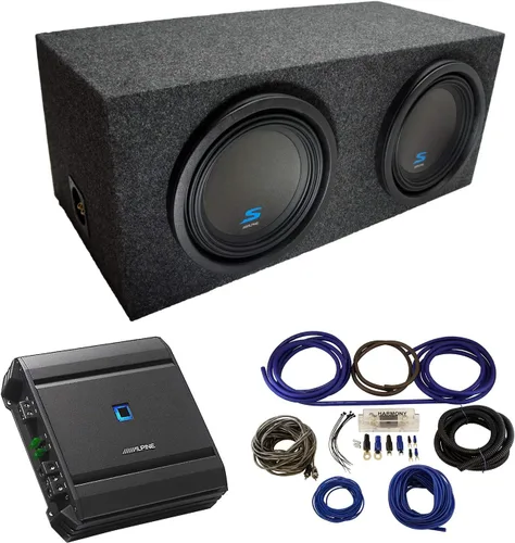Este paquete incluye los siguientes artículos: 1 x Alpine S-A60M Audio para Coche Tipo Serie S Clase D Sub 1200W Amplificador 1 x Harmony Audio HA-AK4 Kit Completo de Instalación de Amplificador de Calibre 4 - Níquel 2 subwoofers Alpine S-W10D2 Tipo S Series Sub Dual 2 Ohm 1200W Peak 10" 1 x Caja de subwoofer sellado dual de 10" para audio de automóvil, con ángulo trasero, de madera MDF de 5/8" Amplificador de audio para coche Alpine S-A60M Serie Tipo S Clase D Sub 1200W: Detalles del producto: Amplificador mono de potencia Alpine Serie S - S-A60M Potencia de salida: 400 W RMS x 1 (4 ohm, 14,4 V 85dB (ref: 1W en 4 ohm), >105dB (ref: potencia nominal en 4 ohm) Respuesta de frecuencia: 10HZ-400Hz (+/- 3 dB) NOTA: Este producto solo se puede enviar a direcciones dentro de los Estados Unidos y sus territorios Harmony Audio HA-AK4 Kit Completo de Instalación de Amplificador Calibre 4 - Níquel: Alpine S-W10D2 Type S Series Sub Dual 2 Ohm 1200W Pico 10" Subwoofer: Características generales: Subwoofer serie S de 2 ohmios (tipo S) de 10" Manejo de potencia: Pico: 1800 vatios RMS: 600 W Respuesta de frecuencia: 26-200Hz Audio para automóvil American Sound Connection Caja de subwoofer sellado dual de 10" con ángulo trasero, 5/8" de madera MDF: Características: Caja de subwoofer doble sellada de 10" con disparo trasero Profundidad de montaje: 13-3/4" Espacio aéreo: 1 pie cúbico (por Sub) Recinto sellado Dimensiones: Ancho 30-1/4" x Altura 13" x Profundidad Uno 13-3/4" x Profundidad Dos 16-1/2" Diseño sellado produce una calidad de sonido de graves ajustada Alfombra gris de alta calidad Construido con MDF de alta calidad
