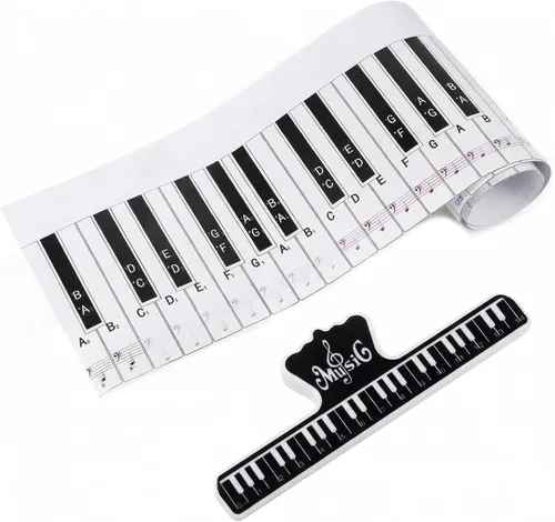 BENBO Teclado de Piano de 88 Teclas Guía de Práctica de Simulación de Dedos Ayuda Didáctica Tabla de Notas con 1 Clip para Libro de Música, Cartón