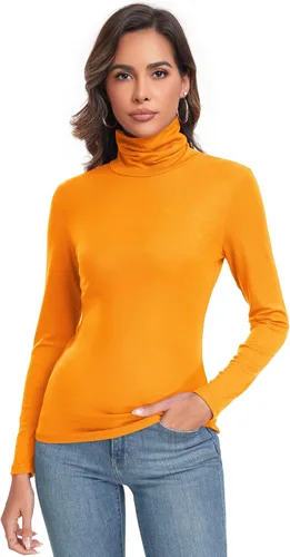 Camiseta de manga larga para mujer, casual, ligera, cuello alto, ajustada, térmica, activa
