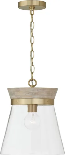 Capital Lighting 347311WS Finn - Lámpara colgante de techo moderna bohemia artesanal de madera de mango con cono de vidrio transparente y 1 luz con cristal