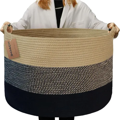 Canasta de manta de gran capacidad: canasta de 22 pulgadas de largo x 22 pulgadas de ancho x 14 pulgadas de alto para mantas, lo suficientemente grande como para almacenar artículos voluminosos como edredones, edredones, almohadas, cojines y animales de peluche, ropa de invierno, ropa de lavandería y mucho más 【Gran cesta de almacenamiento】La cesta de cuerda está hecha de cuerda de algodón orgánico que es suave por lo que no se enganchará a la ropa. Canasta tejida artesanal con tonos neutros y colores para decoración y almacenamiento del hogar Canasta con asas: esta canasta de manta para sala de estar cuenta con dos asas plegables integradas. Las asas resistentes hacen que sea fácil de llevar, perfecta para organizar las pertenencias de los niños. Con un amplio espacio, los más pequeños pueden alcanzar fácilmente y agarrar sus artículos favoritos para jugar en la guardería Uso multifuncional: la canasta tejida es la clave para un hogar funcional y ordenado. Esta es una gran opción para plegar mantas adicionales para almacenar en tu armario de ropa. Te ayuda a organizar toallas de baño, ropa de cama extra, almohadas y otras cosas Cestas para organizar: la cesta de mimbre para mantas puede darte un lugar para poner todo en su lugar. Mantiene un espacio ordenado y ordenado. El almacenamiento de manta de tela suave es ideal para almacenar artículos como almohadas, mantas y ropa de cama