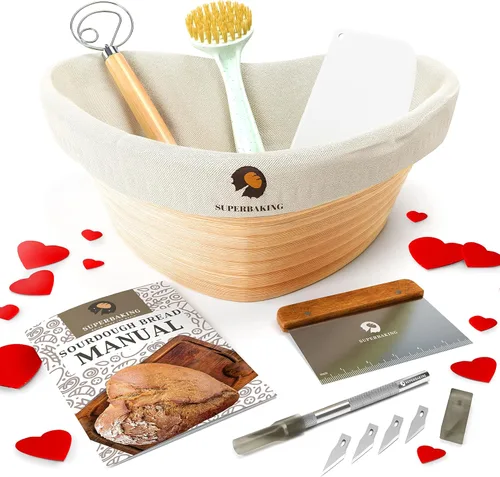 Superbaking Banneton - Juego de cestas a prueba de pan, cesta a prueba de masa madre para hacer pan, suministros para hornear, kit de pan artesanal,
