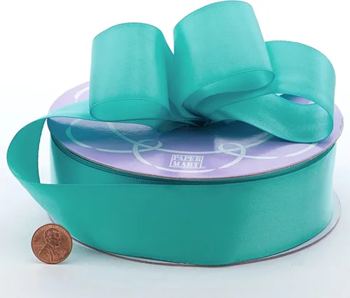 Cinta de satén de doble cara aguamarina de 1 1/2" X 50 yardas