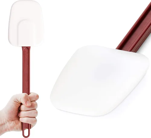 Obtén la calidad duradera en la que confían los profesionales. Los chefs confían en nuestras espátulas para cualquier agitación, mezcla o plegado en sus cocinas. La calidad súper duradera de nuestros grandes utensilios de espátula durará toda una vida para hornear y cocinar Resistente, pero flexible para cualquier tarea de estiramiento. Incluso las masas y mezclas más gruesas no son rival para nuestro utensilio de cocina súper fuerte, pero las cabezas siguen siendo lo suficientemente flexibles como para llegar fácilmente a los fondos y esquinas de cualquier tamaño de tazón. Satisfacción de por vida. Respaldamos todas nuestras espátulas grandes, antiadherentes y antiadherentes de 14 pulgadas. Si en algún momento no estás 100% contento, solo envíanos un correo electrónico y prometemos hacerlo bien Resistente al calor hasta 500° = cocción sin preocupaciones. Otras espátulas de plástico baratas se derriten y se desmoronan incluso a fuego lento. Nuestras espátulas de lujo y calidad profesional están construidas más resistentes para durar a través de altas temperaturas y mezclar fácilmente huevos revueltos. Mango largo y ergonómico significa una mezcla cómoda. Nuestras espátulas tienen un mango de 10 pulgadas que mantiene tus manos alejadas del calor de la estufa. Además, nuestras asas son gruesas y cómodas en tu mano para que incluso las largas horas de cocina se sientan como una brisa