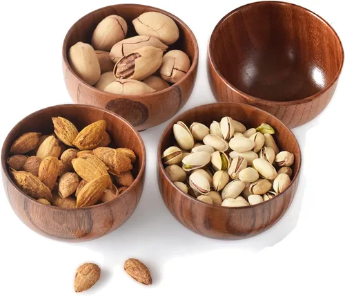 Cuencos y cucharas pequeños de madera, 10 onzas. Cuencos de control de porciones para aperitivos, postres, cuencos japoneses para servir arroz,