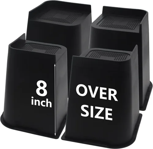 【ELEVADORES DE CAMA ENSANCHADOS】: Los elevadores de muebles mejorados tienen un área de superficie aumentada para proporcionar más contacto tanto con los muebles como con los elevadores, asegurando una colocación estable y reduciendo la posibilidad de deslizamiento o tambaleo (Ancho: 5.3", Altura: 8") 【DISEÑO ÚNICO EN FORMA DE L】: El diseño en forma de "L" de estos elevadores de muebles de 8 pulgadas facilita su combinación con las patas. El elevador de diseño de borde medio envuelto es adecuado para patas de muebles de varios anchos, especialmente muebles sin patas o con patas gruesas 【MATERIALES SÓLIDOS】: Estos elevadores de muebles están hechos de plástico duradero. Cada elevador de cama puede soportar muebles de alta resistencia de hasta 6500 libras. Soportan fácilmente muebles pesados sin tambalearse 【Múltiples ocasiones】: estos elevadores de cama resistentes se pueden utilizar para elevar camas, sofás, sillones, armarios, mesas, sillas y refrigeradores, lo que te proporciona más espacio de almacenamiento y hace que la limpieza sea más conveniente Contenido del paquete: hay 4 juegos en la caja. Tenga en cuenta que debido al peso de los muebles, se recomienda instalar los elevadores con la ayuda de dos personas para garantizar la seguridad. Comprueba el tamaño antes de comprar el producto