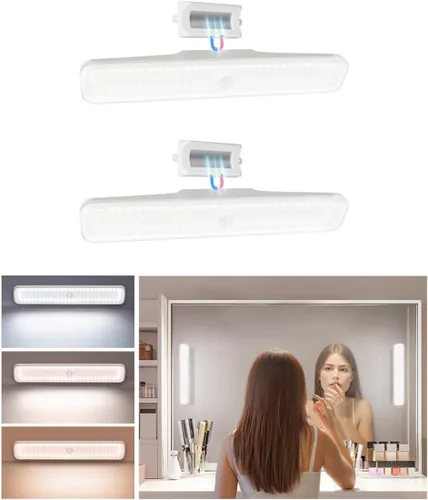 EZVALO Paquete de 2 Luces de Maquillaje Inalámbricas, Luces de Tocador Recargables para Espejo con 3 Modos de Color, Atenuación Continua, Control