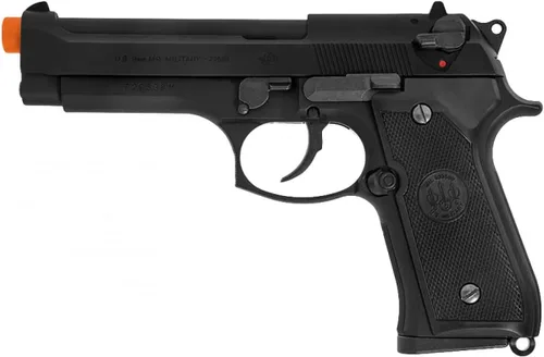 Construcción de polímero de alta resistencia para una durabilidad ligera Agarre texturizado extraíble para una sujeción más estable y fiable Miras de hierro ajustables delanteras y traseras estilo M9 Tranuras deslizantes traseras para ayudar en el estante y para mayor estilo Aspecto de cordón integrado para fijar sistemas de retención Cuenta con grabado "U.S. 0.354 in M9 Military" en la diapositiva para una sensación auténtica Réplica a escala 1:1 del clásico modelo militar M9