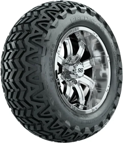 GTW Combo de ruedas y neumáticos para carrito de golf de 14 pulgadas | Ruedas cromadas GTW Tempest en neumáticos todo terreno Predator de 23 x 10-14