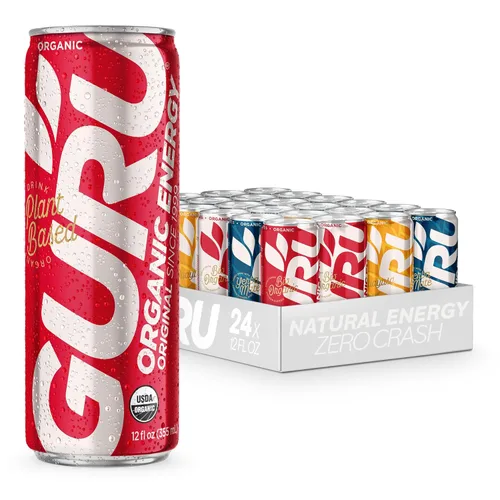 GURU Paquete variado de bebidas energéticas orgánicas, bebida energética limpia con cafeína natural a base de plantas de té verde, sin gluten y