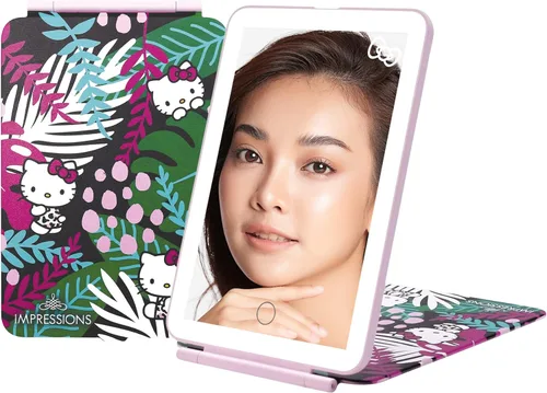 Impressions Vanity Hello Kitty Touch Pad - Mini espejo de maquillaje tricolor con cubierta abatible y tira LED, espejo de tocador de viaje con Animal