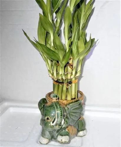 ¿Para qué sirve Jarrón de cerámica de elefante de tamaño mediano con planta de bambú de la suerte de 2 niveles de 4 pulgadas y 6 pulgadas?