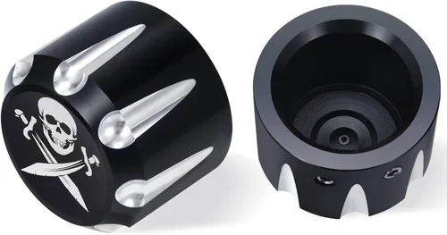 Diseño único: estilo de calavera de moda en la cubierta, combinación perfecta para accesorios del eje delantero, haciendo que tu vehículo sea único y fresco. Ajuste: estas cubiertas de tuerca de eje delantero se ajustan a los modelos Harley Davidson VRSC 2002-2011 (excepto VRSCF y VRSCR), Harley 2007 y posteriores Softail (excepto Springer, FXCW), Harley 2008 y posteriores modelos Touring y Trike, Harley 2008 y posteriores Dyna, 2008 y posteriores XL. 【Excelente rendimiento】Estas cubiertas para tuercas de eje delantero pueden proteger los accesorios del eje delantero de la suciedad, la humedad, el polvo y otros daños exteriores. Fuerte y duradero, no se deforma después de un largo tiempo de uso. Material: hecho de mecanizado CNC con carcasa de aluminio de alta calidad, con pieza atornillada de alto rendimiento. El paquete incluye: 2 tapas de tuerca de eje delantero; accesorios de montaje (instrucciones de instalación no incluidas).