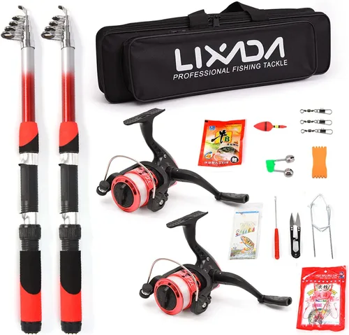Kit completo de pesca: 2 x caña de pescar telescópica, 2 x carrete de pesca, bolsa de pesca, varios señuelos de pesca, anzuelos de pesca y algunos accesorios de pesca necesarios. Caña de pescar de 6.9 ft: el material de fibra de vidrio de alta densidad hace que la caña de pescar sea dura y . La caña de pescar es telescópica y portátil, muy conveniente para llevar. Estuche para bolsa de pesca: la bolsa de pesca está hecha de nailon antiarañazos, proporciona a tu aparejo de pesca una conservación completa. La gran capacidad tiene suficiente espacio de almacenamiento para tus aparejos. Carrete de pesca: este carrete de pesca de lujo es intercambiable a mano izquierda y derecha. Cuenta con carrete de metal, cómodo mango plegable de ABS y sistema antiretroceso instantáneo. Capacidad de línea (mm/m): 0.18/215, 0.20/175, 0.25/110. Accesorios de pesca: Este kit viene con señuelos de pesca, ganchos y algunos accesorios de pesca necesarios, campanas, anzuelos, s, flotadores. El kit completo es ideal tanto para principiantes como para profesionales. Es ligero y portátil, muy cómodo de llevar.