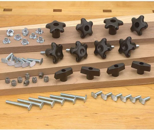Construye tus propias plantillas con nuestro paquete de valor de hardware JIG IT. Varios pernos en T, pomos e inserciones para personalizar tus propias plantillas y accesorios para tu tienda. Un valor de $36.00. El kit contiene: 4 pomos de 5 estrellas #23812 5/16" – 18TPI 4 cada uno de #23846 5 Star Knob 5/16" – 18TPI Stud 4 cada uno de #71514 2" T-Knob 5/16" – 18TPI 1 paquete de #26062 Tuercas 5/16" – 18TPI (8 por paquete) 1 paquete de #28811 5/16" – 18TPI inserto roscado (8 por paquete) 6 cada uno de #339. 65 5/16" x 1" T-Bolt 6 cada uno de #83311 5/16" x 1-1/2" T-Bolt 6 cada uno de #33939 5/16" x 2-1/2" T-Bolt