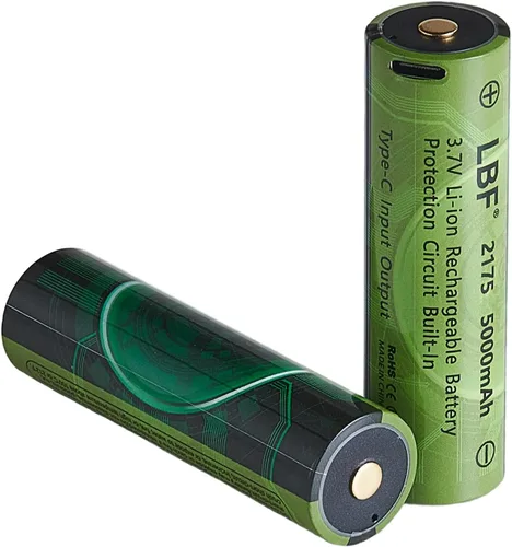 【Especificaciones de la batería】Tipo de batería: (21 x 75 no 18 x 65) Circuito de protección PCB superior con botón integrado, capacidad: 5000 mAh (5 Ah), clasificación WH: 18.5 Wh, voltaje: 3.7 V, tamaño: 0.846 x 2.961 in (0.85 x 2.96 pulgadas), característica: entrada/salida tipo C. , Cantidad: 2 Paquete Recargable más de 1000 veces: una sola batería recargable de 3.6 voltios puede recargar hasta 1000 ciclos de carga y descarga y sin efecto de memoria. Reemplaza más de 1000 baterías alcalinas desechables, reduce el desperdicio de recursos y una buena relación calidad-precio. Gran capacidad: batería LBF de 3.7 V con una capacidad de 5000 mAh y voltaje de 3.7 V, batería de alta capacidad con baja tasa de autodescarga, alto consumo de energía, alta densidad de energía y diseño libre de contaminación, no es necesario cargar las baterías con frecuencia. Dispositivo aplicable: batería LBF 21750 para linternas LED, faros, luces de bicicleta, luces de emergencia, luces de trabajo, altavoces, instrumentación. La batería de entrada/salida USB-C se puede utilizar como un banco de energía de emergencia para cargar su teléfono u otros dispositivos. Es 0.846*2.961 in, no 0.827*2.756 in. Comprueba si es la batería que necesitas antes de comprar. Seguro y confiable: la más alta calidad, el cliente más feliz. La batería integrada de circuito de protección LBF cuenta con seis tipos de protección, incluyendo temperatura, cortocircuito, sobrecarga y protección contra sobrecorriente.
