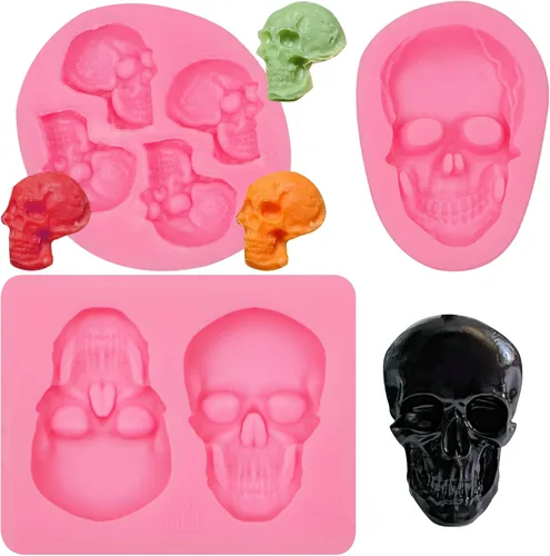 Molde de silicona de esqueleto 3D: puedes obtener 3 moldes de silicona de calaveras de Halloween con diferentes formas. Se puede utilizar para hacer ricas decoraciones de pasteles con temática de calaveras de Halloween, suficiente para tus necesidades de horneado. [Limpieza y uso]: nuestro molde de chocolate para fiesta de Halloween es muy suave y elástico, muy cómodo de usar. El diseño antiadherente te permite desmoldear fácilmente y obtener la forma completa. Fácil de limpiar y reutilizar. Puede ofrecerte una agradable experiencia de horneado. Materiales de alta calidad: el molde de fondant de calavera con cabeza de esqueleto está hecho de silicona de grado alimenticio, duradero. Se puede utilizar en entornos de -104°F a +446°F. Reutilizable en microondas, horno, congelador y lavavajillas. Aplicación: nuestro molde creativo de silicona para decoración de pasteles de calavera con cabeza de esqueleto es adecuado para hacer chocolate, decoración de pasteles, decoración de cupcakes, cake pop y paletas. También puede hacer manualidades de resina de arcilla polimérica. [SERVICIO]: Continuamos brindando a los clientes moldes y servicios de silicona de calavera 3D de alta calidad. Si tienes alguna pregunta sobre nuestros moldes de silicona de calavera de Halloween, ponte en contacto con nosotros para obtener una solución satisfactoria
