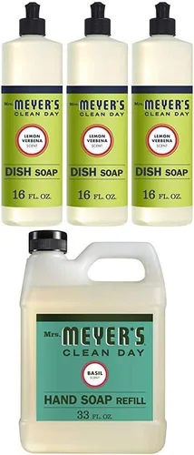 Mrs. Meyer's Clean Day Jabón líquido para platos, verbena de limón, botella de 16 onzas (paquete de 3) y repuesto de jabón líquido de manos,