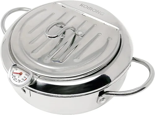 Olla de acero inoxidable 304; hecha de acero inoxidable 304 duradero y seguro. La olla soporta altas temperaturas y mantiene el calor de manera uniforme. Perfecto para freír papas fritas, nuggets de pollo, bolas de carne, pescado y papas fritas, verduras, etc. TERMÓMETRO FAHRENHEIT (°F); fácil de leer sin conversión de Celsius. Puede verificar con el termómetro en la tapa si la temperatura del aceite se mantiene bien mientras se fríe. Ahorro de aceite: esta pequeña olla profunda se puede llenar con una pequeña cantidad de aceite. Ayuda a freír mucha comida con solo una pequeña cantidad de aceite. El volumen de la olla es perfecto para 1-3 personas. Estante de drenaje de aceite, olla en forma de V con mango aislado; sin plato adicional para drenar aceite. Use una rejilla de drenaje para gotear aceite y mantener la comida frita caliente mientras drena. Además, la olla en forma de V hace que sea fácil verter aceite fuera de la olla sin gotear. Fácil de limpiar: apto para lavavajillas (excepto termómetro). Todos los componentes (estante de drenaje de aceite, termómetro y tapa) son desmontables. Coloque la olla y la tapa en el lavavajillas y limpie el termómetro con una toalla de papel simplemente.