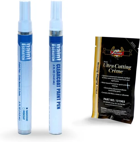 Combinación de color estándar de la industria profesional: PaintScratch hace que este bolígrafo de pintura de retoque sea compatible/reemplazo para Audi y cumple con las especificaciones estándar de la industria del concesionario para que coincida con el color azul Navarra con el código de color LX5H. Kit de reparación de arañazos de automóvil para retoque - Este kit de pintura de retoque incluye 1/2 oz. Lápiz de pintura base, 1/2 oz. Bolígrafo de capa transparente, 2 oz. Crema de corte (compuesto de frotamiento). Pintura automática estándar de la industria según el código de color: los códigos de pintura generalmente contienen letras y números. Esta pintura automotriz estándar de la industria no coincide con ningún otro vehículo, excepto las pintadas con el código de color LX5H. Bolígrafo de pintura: PaintScratch mezcla y fabrica el bolígrafo de pintura para que coincida exactamente con el código de color LX5H. Bolígrafo de pintura fácil de usar: los bolígrafos de pintura de este kit de pintura de retoque son similares a un marcador de fieltro pero con puntas de cincel más firmes. Los bolígrafos de pintura son fáciles de controlar y ayudan a prevenir el problema de "mancha" que a menudo se ve con un pincel. Utiliza la crema de corte incluida (compuesto de frotamiento) en la capa transparente para obtener el mejor brillo.