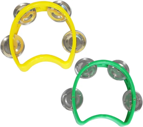 Tamaño mini: 3.9 x 3.6 x 1.1 in. Cantidades: 1 par (2 piezas). Color vivo brillante: 1 verde y 1 amarillo. Material seguro: esta mini pandereta está hecha de material seguro, bordes redondos seguros y campanillas seguras. No dañará a los usuarios cuando estén usando este instrumento. Material de plástico ABS duradero: la pequeña pandereta consiste principalmente en plástico ABS duradero que no es fácil de romper ni decolorar, por lo que se puede utilizar durante varios años. Diseño perfecto: colores vivos, mini diseño lindo con 4 campanas, mango de fácil agarre, tamaño pequeño de mano, fácil de sostener en la mano. Aprendizaje de tempo y ritmos: cuando juegan esta mini pandereta, los usuarios se familiarizarán con el tempo, los ritmos y la libertad de creatividad.