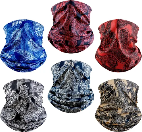 Paquete de 6 polainas elásticas para el cuello, pasamontañas, bandana versátil para hombres y mujeres