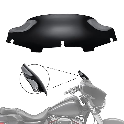 Características: este parabrisas está diseñado para mantener al conductor de la motocicleta seguro y protegido del viento del viento, rocas arrojadas, etc., y reducir el ruido del viento durante la conducción, y la altura adecuada no afecta la línea de visión del conductor, y puede disfrutar del hermoso paisaje en el camino. Compatibilidad: compatible con los modelos Harley Davidson Touring Electra Glide, Street Glide, Ultra Classic y Trike 1996-2013 (no es compatible con los modelos Road Glide y Road King). Alta calidad: plástico ABS superior con superficie lisa, flexible y fuerte, no se raya ni se agrieta fácilmente, proporcionando una alta resistencia al impacto y estabilidad de dimensiones. 【Fácil de instalar】Montar y quitar con gran comodidad, simplemente utiliza los accesorios existentes de tu carenado actual. Comprueba si es compatible con el modelo de tu motocicleta antes de comprar. El paquete incluye: 1 parabrisas de 6 pulgadas (instrucciones de instalación no incluidas). Altura del parabrisas: 6" (mide desde el centro del perno medio).