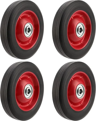 CALIDAD FIABLE - Las ruedas de repuesto para carretillas están hechas de goma sólida, y los ejes utilizan hierro grueso pintado con laca roja. Las ruedas de repuesto son resistentes, duraderas y resistentes al desgaste. No es fácil que se pinche o se oxide. Estables y silenciosas: las ruedas planas de goma sólida pueden moverse constantemente en diferentes superficies, como césped, alfombras, baldosas de cerámica, suelo de concreto, suelo de madera, etc. El neumático de goma también rueda silenciosamente sin hacer ruidos fuertes. LO QUE OBTENDRÁS - Recibirás 4 piezas de neumáticos de goma sólida para satisfacer tus necesidades de reemplazo de neumáticos. Cada neumático tiene un diámetro de 6 pulgadas, un ancho de 1.5 pulgadas y un diámetro del agujero del eje de 1/2 pulgada. Proporciona una capacidad máxima de carga de 176 libras. REEMPLAZO PERFECTO - Las ruedas de 6 pulgadas para carretillas son a prueba de pinchazos. Estas ruedas son reemplazos perfectos para las tuyas desgastadas y oxidadas. Puedes instalarlas en carretillas de mano, cortacéspedes, carritos de compras, compresores de aire, sopladores de nieve, carritos de jardín, carretillas, etc. Servicio posventa: esperamos que estés satisfecho con nuestros productos, por lo que te ofrecemos una compra sin riesgos. Si tienes alguna pregunta o insatisfacción con nuestros neumáticos de goma sólida, no dudes en ponerte en contacto con nosotros. Nos pondremos en contacto contigo en 24 horas. Este producto viene con una garantía de devolución de dinero de 30 días.