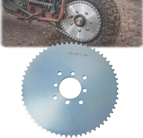 [Aviso de compatibilidad y ajuste] Piñón de 60 dientes diseñado para aplicaciones de cadena #40/#41/420 en algunos go karts y mini bicicletas. ️ No es universal: confirma la distancia del diámetro exterior, el tipo de cadena y el patrón de perno antes de realizar el pedido. Dimensiones del producto: verifica antes de comprar: Diámetro total: 9-3/4 pulgadas. Diámetro central: 2-1/8 pulgadas. Cuenta con dientes: 60T. Cuenta con orificios de montaje de 8 x 3/8 pulgadas. El patrón de los pernos varía según la rueda. Consulta el diagrama de dimensiones para ver las mediciones exactas. Acero tratado térmicamente de alta calidad: fabricado con acero de alta resistencia tratado térmicamente para resistir el desgaste, la deformación y la fatiga de los dientes en condiciones de conducción exigentes. [Dientes mecanizados de precisión] El diseño de dientes biselados y la superficie lisa promueven el enganche adecuado de la cadena, la vibración reducida y la transmisión de potencia estable cuando se combinan correctamente. Compra con confianza: si tienes alguna pregunta sobre el ajuste o la compatibilidad, no dudes en ponerte en contacto con nosotros antes o después de la compra. Respaldamos nuestro producto y estamos comprometidos con tu satisfacción.