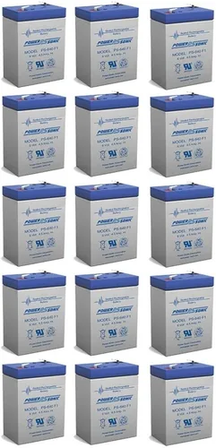 Batería original Power Sonic PS-640 F1 6V 4.5AH SLA. Paquete de 15 Dimensiones: (L) 2.76 x (W) 1.86 x (H) 4.25. Peso: 1.60 lbs. SLA/AGM sin mantenimiento, batería a prueba de derrames Batería recargable que se puede montar en cualquier posición, resiste golpes y vibraciones Garantía completa de un año
