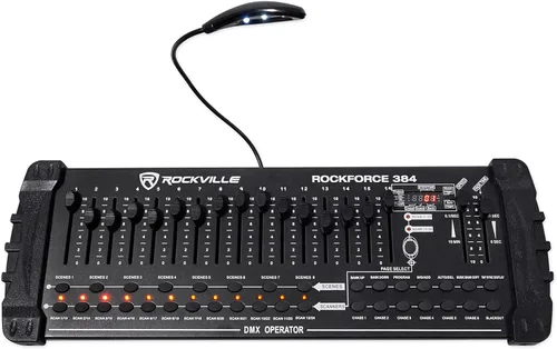Rockville se enorgullece de presentar el nuevo controlador DMX universal ROCKFORCE 384 con 384 canales DMX. Este controlador es resistente. Está construido con una carcasa metálica gruesa y es fácil de usar. Este controlador está diseñado para funcionar perfectamente con luces de las principales marcas como Chauvet, American DJ y mucho más. Nuestro controlador DMX es de alta calidad e incluye instrucciones fáciles de entender. Este controlador funciona igual que los otros controladores de marca líderes. Con el Rockforce 384 puedes controlar 24 luces con hasta 16 canales por luz. Este controlador cuenta con 30 bancos de 8 escenas programables, 6 persecuciones programables de 240 escenas y puede grabar hasta 6 persecuciones con tiempo de desvanecimiento y velocidades. Además, hay una pantalla LED de 4 bits y un micrófono integrado que se puede utilizar para configurar modos automáticos. También incluimos una lámpara LED de cuello de cisne gratis para que puedas operar esta unidad en la oscuridad. Una gran función que nos gustaría mencionar es que puede tomar el programa de cualquier luz y asignarlo fácilmente a otra luz. ¡Esta característica adicional proporciona flexibilidad y le ahorrará un montón de tiempo en su próximo concierto! Aunque este controlador tiene características complejas, pudimos diseñarlo pensando en usuarios de todos los niveles de experiencia. Este controlador es tan fácil de usar que se lo dimos a algunas personas que tenían poca o ninguna experiencia en el uso de controladores de iluminación y pudieron dominar en poco tiempo. Probamos esto contra controladores de los principales y más famosos fabricantes de iluminación y nuestro controlador funcionó tan bueno o mejor a una fracción del precio. Estamos tan seguros de la fiabilidad, la calidad de construcción y tu satisfacción con este producto que te devolveremos el dinero de 90 días. Puedes usar el artículo y si no te gusta, entonces cubriremos los gastos de envío de devolución y te devolveremos todo tu dinero al recibir la devolución.