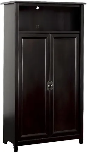 Acabado: Estate Black Material: madera de ingeniería Almacenamiento oculto detrás de las puertas para una organización competente y privacidad. Cuatro estantes ajustables crean soluciones de almacenamiento versátiles. El almacenamiento abierto cuenta con un estante superior completo para exhibir.