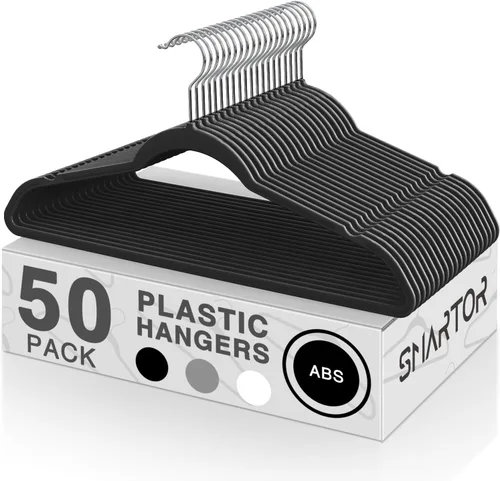 Perchas para camisas no flocadas: no te preocupes por el terciopelo desteñido en casa. Nuestro colgador de ropa está hecho de plástico ABS de alta densidad que te permite colgar la ropa pesada y quitarla fácilmente, lo que hace que el proceso de colgar sea más rápido y se sienta bien. Las perchas finas son muy potentes para cada ropa de menos de 11 libras, te preocupa por qué las perchas hechas de plástico ABS son tan fuertes que puedes cambiar la nueva sin razón Perchas de armario que ahorran espacio: maximiza el espacio de tu armario con estas perchas delgadas. Mide el mismo grosor que las perchas flocadas, nuestras perchas delgadas son ideales para armarios pequeños, liberando espacio valioso para más ropa y accesorios. Las perchas ahorran espacio para todas partes pueden ser una gran solución para el almacenamiento del armario, organizando cualquier rincón para cambiar la ropa de la temporada extra Plástico ABS de alta calidad: hecho de plástico ABS duradero y con un gancho giratorio metálico de 360°, nuestros ganchos negros están diseñados para soportar el peso de tu ropa pesada. Cuelga abrigos o chaquetas de invierno, nuestras perchas delgadas no flocadas no se rompen ni se doblan. Te prometemos el colgador de gran valor que tienes en nuestra tienda, pensando en su durabilidad y perfectamente adecuado para la mayoría de armarios, con un aspecto elegante como puedas imaginar Perchas para suéter sin protuberancias: estas perchas para adultos funcionan muy bien con todo tipo de prendas, se pueden utilizar para suéteres, blusas, camisas, trajes, chaquetas y mucho más. Las muescas adicionales y el diseño de hombros curvos mantendrán tu vestido con correa en su lugar de forma segura. Di adiós a ese desorden enredado de perchas en todos los tamaños y formas Dimensiones estándar para adultos: miden 17.5 pulgadas de largo, 9 pulgadas de altura, nuestros colgadores de ropa son del tamaño perfecto para cualquier artículo de ropa. Con su construcción robusta y amplio tamaño, nuestro perchero de plástico proporciona una solución confiable y versátil para todas tus necesidades de colgar. Con un grosor de 0.2 pulgadas, este paquete de 50 ganchos de plástico te ahorra el 50% de tu espacio en comparación con un soporte normal. Lo que los convierte en un gran organizador que ahorra espacio para armarios de dormitorio