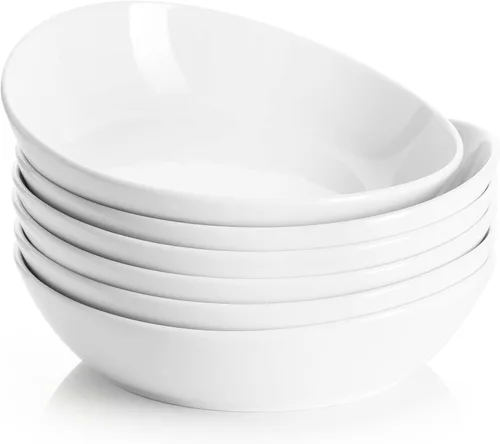 Sweese 135.001 Cuencos de porcelana para ensalada y pasta, 28 onzas, juego de 6, color blanco