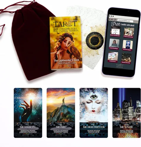 TAROTskills Baraja de tarot de Lightworker: 78 cartas de tarot para principiantes con símbolos de jinete de espera, chakras y reiki alineados,