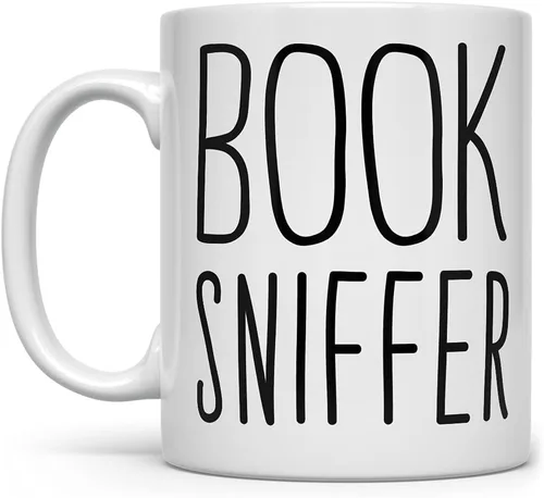 Taza Book Sniffer Apto para lavavajillas y microondas Diseño impreso en ambos lados de la taza Diseñado e impreso en los Estados Unidos por Loftipop Diseño original de Loftipop Mugs