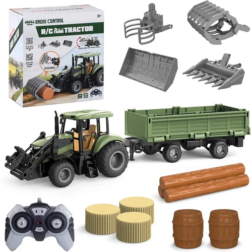 Tractor de Control Remoto, Set de Tractor RC de 2.4Ghz para Niños, Juguetes de Granja para Niños Pequeños con 2 Métodos RC/Cargadora Frontal de 4