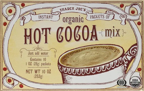 Trader Joe's mezcla de cocoa caliente orgánica instantánea cremosa (2 cajas). Cada caja contiene 10 paquetes instantáneos de 1 onza (un total de 20 paquetes). Solo tiene que añadir agua o si prefiere una taza más rica, mezclar con leche. Un chocolate orgánico para el invierno, un delicioso deleite de temporada.