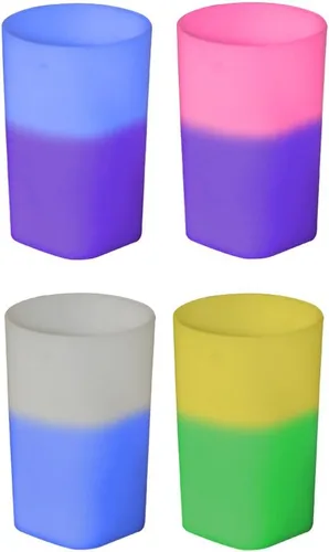 DISEÑO: Fondo cuadrado único, diseño superior redondo y 1 oz. línea marcada en el interior. ACCESORIO DE FIESTA: Los vasos de chupito de plástico reutilizables son una fiesta segura esencial para eventos al aire libre y fiestas en la piscina. CAMBIO DE COLOR: Agregue un disparo frío al vidrio y cambia de un color vivo a otro a medida que la temperatura desciende. Cambios de color para solucionar problemas: las condiciones climáticas frías pueden afectar el cambio de color. Permite que el producto llegue a temperatura ambiente para permitir el cambio más eficiente. Calidad increíble: estos vasos de chupito están fabricados en los Estados Unidos. Libre de BPA: Hecho de plástico, el vaso de chupito reutilizable no contiene BPA y es convenientemente apto para lavavajillas. COLORES DE ESTADO: El hogar original de productos de humor que cambian de color con calor, líquidos fríos, temperaturas frías o luz solar. Embalaje y tamaño: el paquete contiene 12 vasos de chupito surtidos. Estos son 2-1/2 pulgadas de alto. Color del paquete: surtido (rosa a morado, amarillo a verde, azul claro a morado, esmerilado a azul). Nota: las copas "Frosted" tendrán un ligero tinte de color y no son de un color esmerilado puro.
