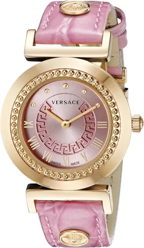 Ronda 762.3 – Swiss cuarzo 2 Manos movimiento Correa de piel de cocodrilo con dos Medusa Estilo rústico. Dorado IP con revestimiento de acero inoxidable y cierre Anillo superior con lunares de metal Resistente a 99 pies (30 m) de agua: resiste lluvia y salpicaduras de agua, pero no ducha o sumersión