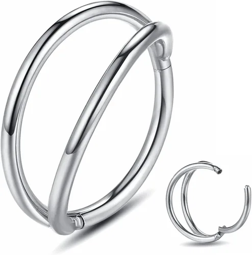 Yrogcu 20G 18G 16G 14G Aro IndividualDoble de Acero Inoxidable con Bisagras, Segmento de Piercing con Clicker para Nariz Diámetro 6mm 8mm 10mm 12mm,